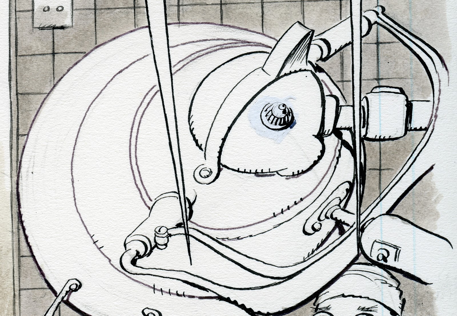 Mort Drucker didn't like the way he drew this knob, so he painted it out and re-drew it.